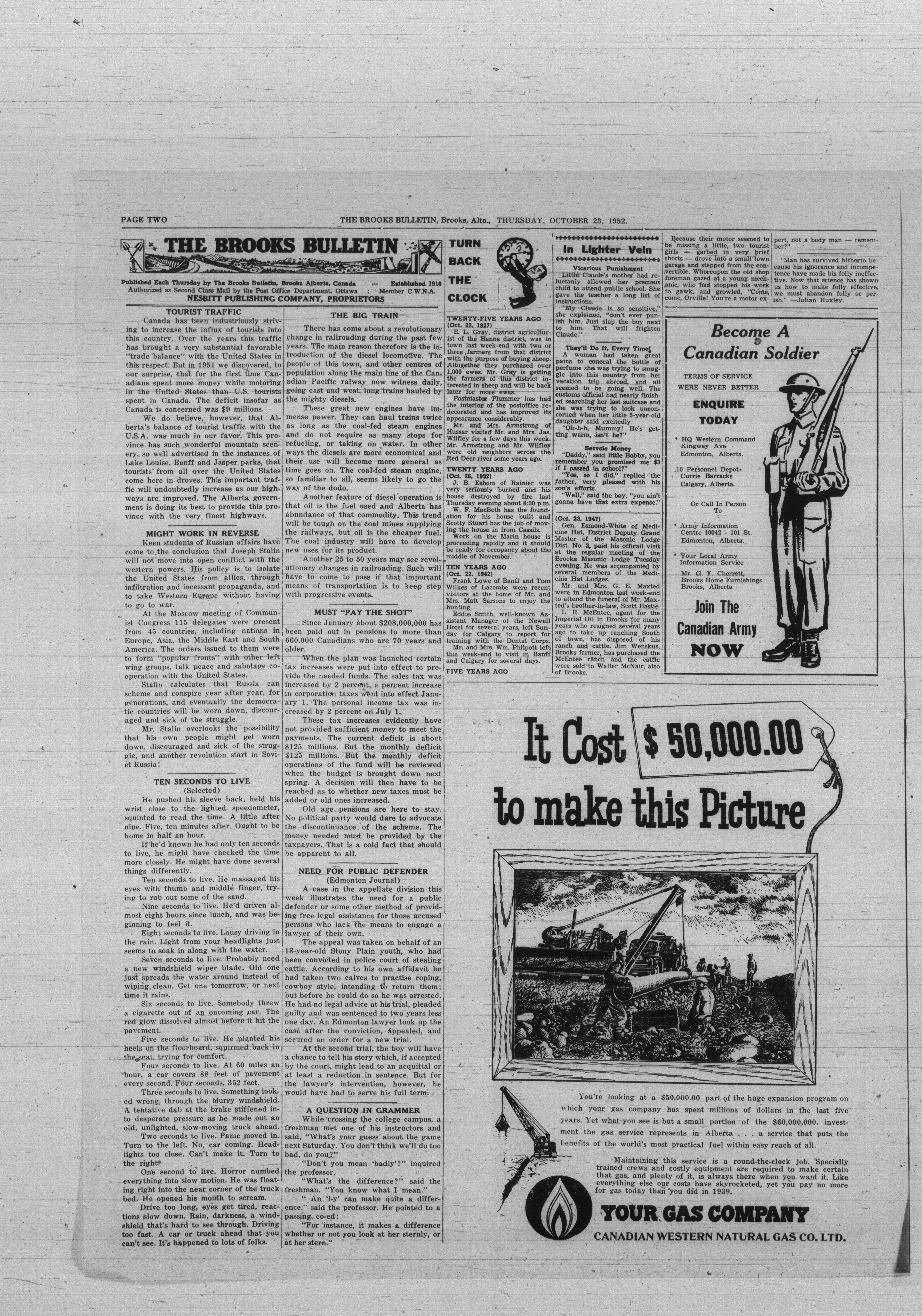 Brooks, Alberta : Bulletin Publishing Company, 1952-1955
