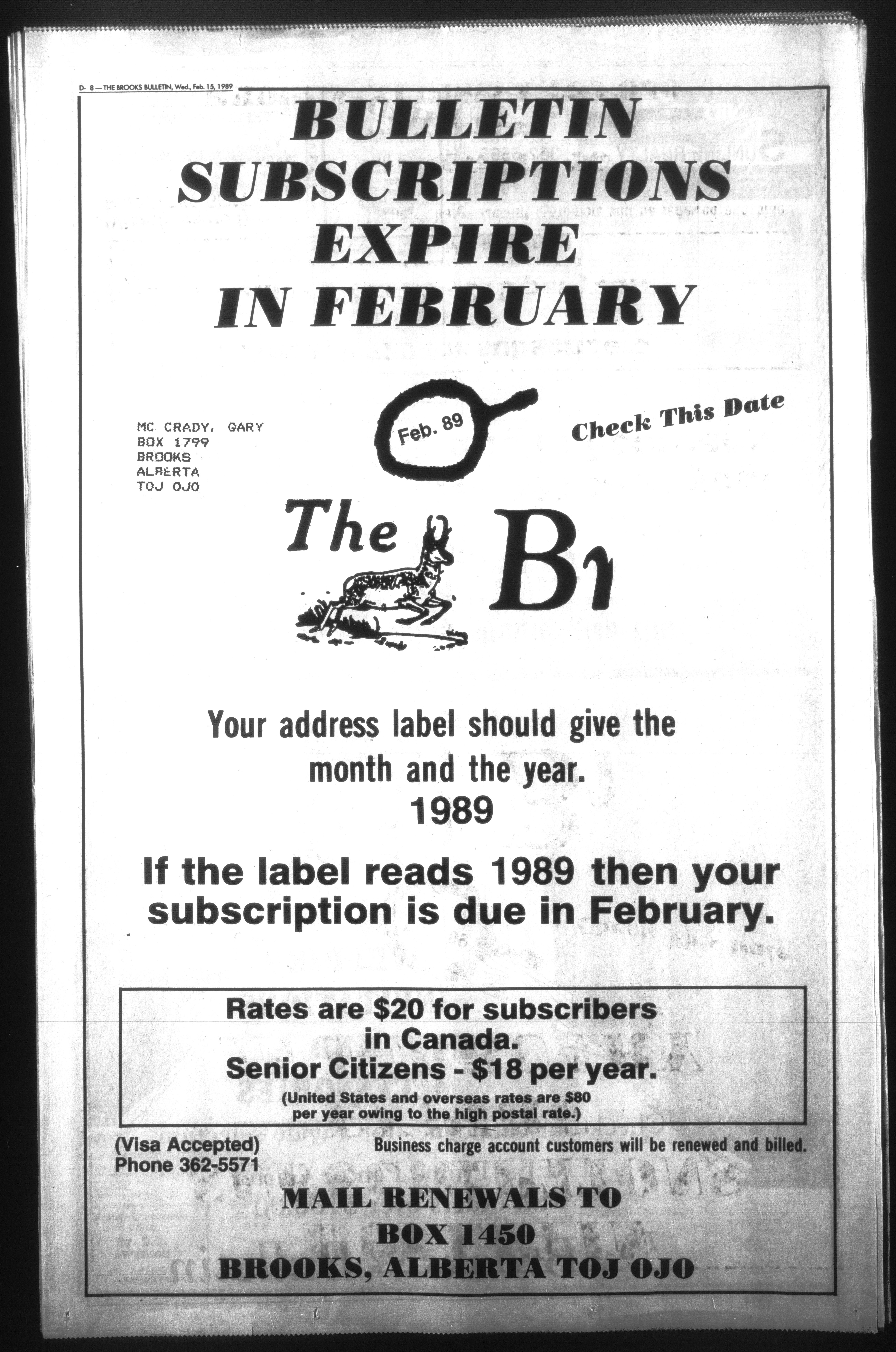Brooks, Alberta : Bulletin Publishing Company, 1988-1989